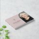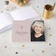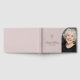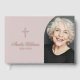 Memorial funeral guestbook featuring a photo inside an half arch and a simple Christian cross.