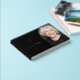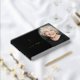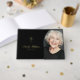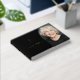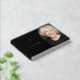 Memorial funeral guestbook featuring a photo inside an half arch and a simple Christian cross. The black background can be customised.