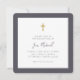 Simple and classic baptism invitation includes a simple gold colour cross and modern hand lettering script with a rounded corner midnight blue border. The back of this stylish baptism invitation features one full photo of the baby boy or girl to be baptised. This beautiful invitation is also perfect for an adult baptism. This traditional religious occasion invitation is perfect for a Catholic sacrament of baptism, Christian baptism, or Christening.