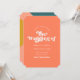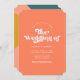 This simple, stylish wedding invitation features retro styled photography on the front over a custom colour background (shown in bold coral peach). The back contains a modern, hand drawn geometric design in dark teal blue, coral orange, peach, golden yellow, and light lilac pink / purple. The back also contains a QR code template for directing guests to your wedding website. Simply Customise the text or delete it, if not desired.