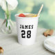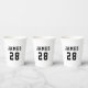 Simple varsity style paper cups featuring your name and number with fully editable colours.  Font colours can be changed by clicking on customise, select the texts in the "Auto Warping, Front" and "Auto Warping, Back" layers and change its colour . Background colour can be changed by going to the "Auto Warping, Wrap" layer and changing the background colour.  They make the perfect paper cups for birthdays, graduation or celebrating your athlete's achievement.