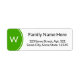 This simple green, white and black return address label design features a customisable name and address. It also features a personalised initial letter.
