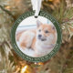Simple pet memorial ornament featuring a photo of your beloved pet, the text 'In Loving Memory' and 'Christmas will never be the same' on the front in a green border that chan be changed to any colour using the 'customise further' option. On the back reads a sympathy quote that reads "No longer by our side, but forever in our hearts.", a cute pawprint with a heart centre, your dogs/cats name, and dates. This is a wonderful keepsake and tribute for the family to cherish for years to come.