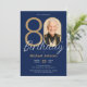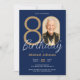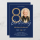 Simple Custom Photo Gold Navy Blue 80th Birthday Invitation