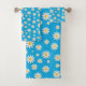 Simple Cute Blue with White Daisy Floral Pattern Bath Towel Set