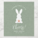 Simple "Somebunny Says Cheers" Easter personalised wine label cute bunny with fluffy tails and stylish sage green background. Perfect for Easter parties or Easter gifts. Customise with short greeting and name.