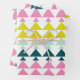 A fun geometric pattern design of triangles in pink, chartreuse, mint, and green.