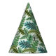 These simple and cute safari theme paper party hats feature a print with various jungle leaves.