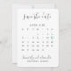Modern save the date card featuring a simple calendar in soft grey with the words, "Save the Date" and your names in an elegant handwriting font and a pastel mint green heart surrounding your date, over a white background. The backside is a matching shade of mint green. DESIGN TIP: For a column that does not have a date in the first row (week), add a space before the first number. If you need any assistance with customising the calendar, please feel free to reach out to me via the "contact" button.