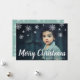 Send out holiday cheer with this cute Christmas card featuring the handwritten greeting "Merry Christmas" and snowflakes drawn in chalk over your favourite family photo. The back side is a soft green snowflake pattern. You may change the colour of the background by clicking the "customise" button.