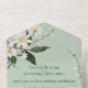 Introducing our charming All-in-One wedding invitation, showcasing simple yellow and white daisies blooming against a serene sage green background. The gentle yellow and white daisies evoke feelings of joy, purity, and new beginnings. Against the soft green backdrop, they create a harmonious and soothing scene that will surely leave a lasting impression on your guests. This design radiates an aura of simplicity and elegance, reflecting the beauty of your love story. The All-in-One wedding invitations are both beautiful and practical by combining the wedding invitation with an easy to remove perforated RSVP postcard. They are also quick and easy to prepare for mailing. Simply address the invitation, fold the back flap and seal with the included clear stickers. Once your guests receive the pre-addressed invitation they simply tear off the perforated RSVP card and drop it in the mail.