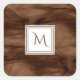 Simple Dark Brown Subtle Marble Modern Monogram Square Sticker