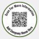 You can replace the website url for your QR code. There are two lines of black display text that you can edit to show a custom message. These stickers have black text in a white circle. The border is forest green.
