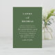 Effortlessly sleek and contemporary, this dark green wedding invitation template boasts cream typography for a touch of elegance. Customising with your own details is a breeze, making it uniquely yours.