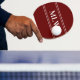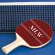 This dark red ping pong paddle has three white letters in the centre. You can change the letters to display the correct monogram. Two white horizontal lines are above and below the initials.
