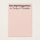 Here's a fun accessory to pick up for your engagement party or joint shower: date night suggestion cards on which guests can write personal notes to the bride and groom. On the front you read "Date Night Suggestions" in a bold, sans-serif font; this typeface is editable so you can choose another if you prefer... or even write a different message. Below there's a place for your names; these appear in a pretty script that is also easy to change. Change the background to any colour you prefer!. Please do not hesitate to reach out to me if you have special requests or need other items. I am also happy to help with customisation of these cards if you need. //