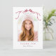 Simple Deep Blush Bow Graduation Photo Thank You Card