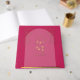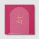 This wedding guest book is shown in an arch style and features a floral design. The 100-page guest book is great day-of stationery for your big wedding day. Shown in rose red. You can customise the text on the front and change the text on the side panel. Use the template to personalise.