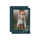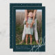 This contemporary one photo Christmas greeting card features elegant white calligraphy script typography and one photo on a trendy teal blue background. Shop this modern holiday collection for additional stylish colours and coordinating mailing accessories.