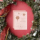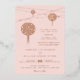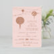 An original illustration of elegant and chic double happiness lanterns in modern simple minimalist kanji / chinese writing hanging on strings of fairy lights, on a light blush pink colour background, with real foil pressed, wedding invitation design. A stylish and classy chinese / asian / oriental themed outdoor / garden wedding design for the contemporary chinese couple.
