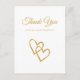 Simple Double Heart Gold Wedding Thank You Postcard