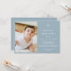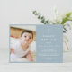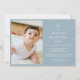 Minimalist Baptism baby photo Invitation in Dusty blue and white