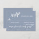 This suite's distinction is due to the modern, handwritten script font used for accent phrases. In this piece, the hand-lettered script font was used to create graphics depicting the words "rsvp", "m", and "menu choice for each guest:". Use the template fields to add your personal details and make this unique, modern design your own. The dusty blue background can be changed to any colour you prefer. Please reach out with any special requests or for customising assistance. // 100 //
