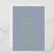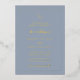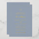 Traditional style gold foil wedding invitation with a simple design featuring your monogram along with accent words in an elegant script over a dusty blue background. This classic wedding invitation is great for a formal wedding.