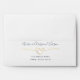 Simple, minimalist, romantic dusty blue wedding invitation 5x7 envelope with return address, modern calligraphy script and gold rope heart.