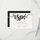 Simple Elegant Script | Modern Wedding RSVP Cards are perfect for couples who want a simple yet elegant wedding invitation design. Features "RSVP" in black script. Sparkle & Glitter © The design features the bride and groom names in an elegant script font. Shown in black and white but can be customised to your wedding colours for the text and background. Add any other graphics, photo or monogram to you personalise this template.
