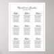 Enhance the elegance of your wedding reception with our elegant 9-table seating chart. The timeless black and white design showcases exquisite script detailing for both the couple's names and table numbers. Accommodating up to 90 guests with 10 seats per table, this chart effortlessly combines sophistication with practicality, ensuring a seamless and classy experience for your guests as they easily locate their designated seats.
