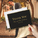 This elegant thank you card's simplicity is beautiful. The design features a thin and minimalist uneven golden edge with golden typography for customisable Thank You, Mr and Mrs Last Name and wedding date. Back of thank you cards was intentionally left blank ,meant for you to add a handwritten note for your family and friends.