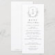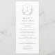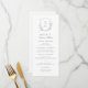 Monogrammed initials framed by elegant crest and hand illustrated botanical leaves, menu details in elegant script and classic font, simple and luxury. Great black and white menu for modern classic wedding, simple formal wedding, elegant botanical garden wedding.