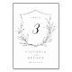 Elegant rustic hand illustrated botanical leaves crest with modern trendy script and classic font in black and white, Simple and sophisticated. Great table cards for modern classic wedding, simple formal wedding, elegant botanical garden wedding.