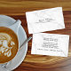 This business card is simple, elegant, sophisticated, and chic. It features a classy and professional design with your name in modern script lettering on a background of white marble rock or stone. The font is lovely and feminine, and the whole presentation exudes style and class. Name and tag line on the front with contact info on the back.