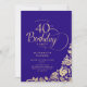 Simple Elegant 40th Birthday Purple Gold Roses Invitation