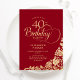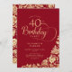 Simple Elegant 40th Birthday Red Gold Roses Invitation