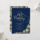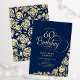 Simple Elegant 60th Birthday Navy Blue Gold Roses Invitation