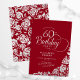 Simple elegant 60th birthday party invitation in red and silver. Classy design featuring roses, faux silver foil and typography script font. Trendy invite card perfect for a stylish female bday celebration. Personalise with your own details. Can be customised to any age. Printed Zazzle invitations or instant download digital printable template.