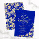 Simple elegant 60th birthday party invitation in royal blue and gold. Classy design featuring roses, faux gold foil and typography script font. Trendy invite card perfect for a stylish female bday celebration. Personalise with your own details. Can be customised to any age. Printed Zazzle invitations or instant download digital printable template.