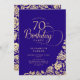 Simple Elegant 70th Birthday Purple Gold Roses Invitation