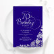 Simple elegant 70th birthday party invitation in purple and silver. Classy design featuring roses, faux silver foil and typography script font. Trendy invite card perfect for a stylish female bday celebration. Personalise with your own details. Can be customised to any age. Printed Zazzle invitations or instant download digital printable template.