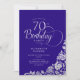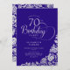 Simple Elegant 70th Birthday Purple Silver Roses Invitation