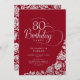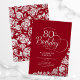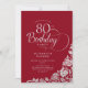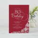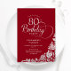 Simple Elegant 80th Birthday Red Silver Roses Invitation