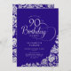 Simple Elegant 90th Birthday Purple Silver Roses Invitation