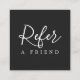 Simple square black and white referral card for beauty related professionals. Simple clean design, fully customisable.