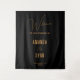 Simple Elegant Black Welcome Script Wedding Backdrop Banner. A black banner with a sleek and stylish design that features a scripted "Welcome" message. Simple design with trendy script and fonts. Personalise all the text on the banner, including the bride and groom's names and the wedding date.