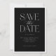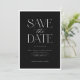 Simple Elegant Black White Calligraphy Script Save the Date features a bold solid border, surrounding modern type that includes calligraphy script.
