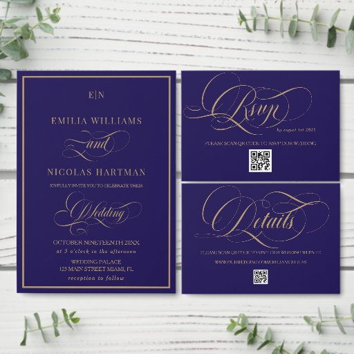 Simple Elegant Blue All In One Wedding Invitation