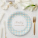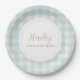 Simple elegant blue gingham plaid Party Paper Plate